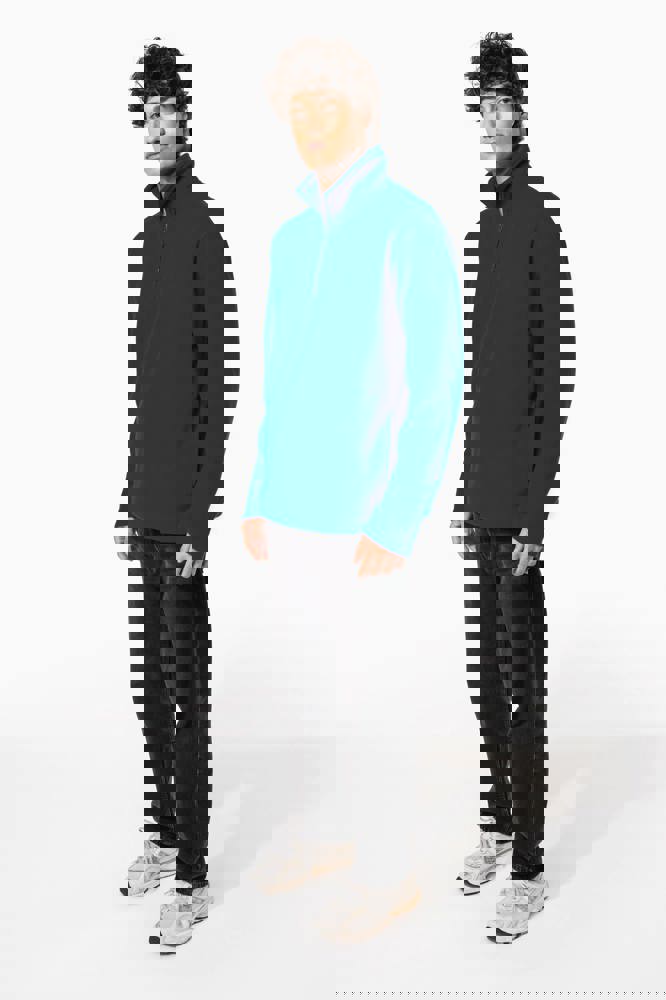 100% Antipilling Polyester-Microfleece. 1/4-Reißverschluss. 2 offene Seitentaschen.