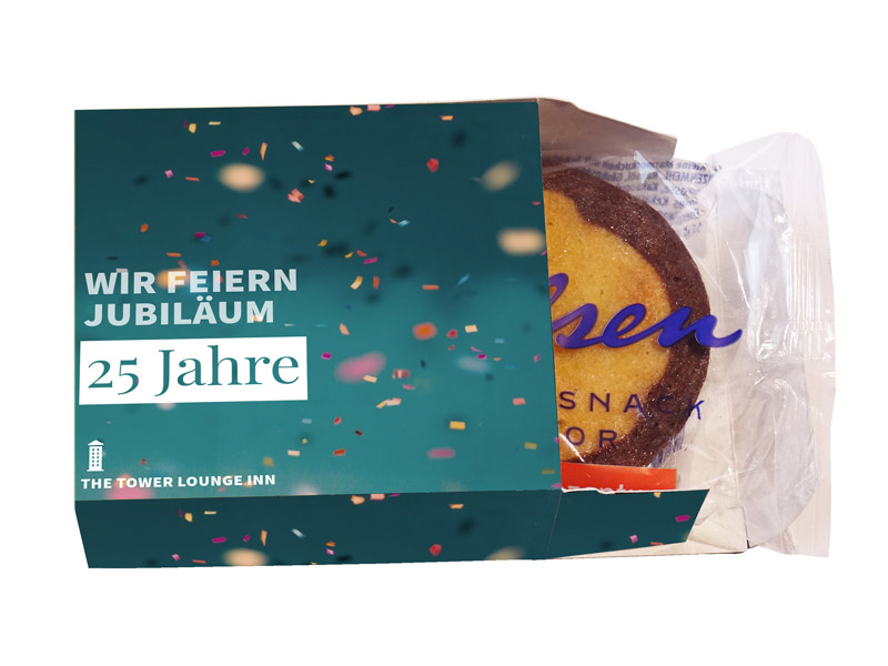 Mini-Marmorkuchen der Marke Bahlsen, original verpackt in wiederverschließbare, individuell bedruckte Schachtel.