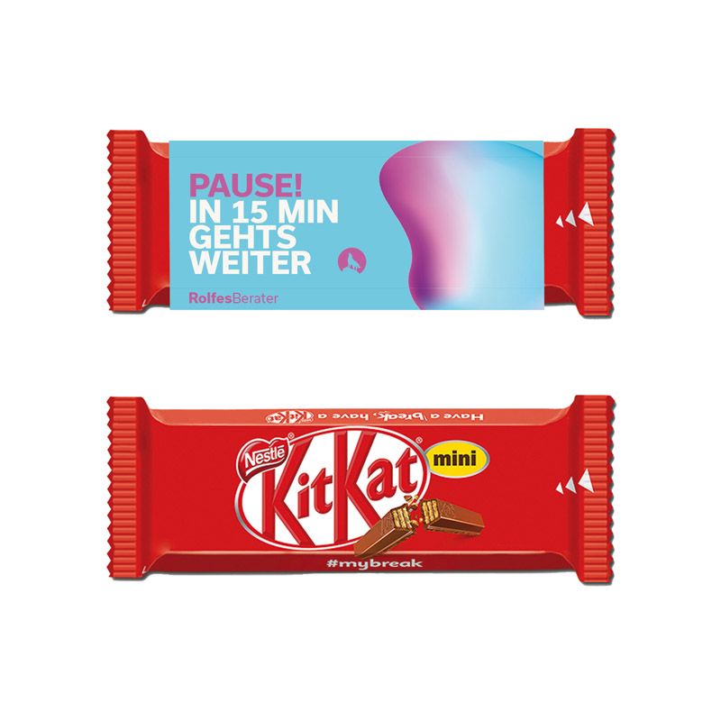KitKat Mini-Schokotafel verpackt im individuell bedruckten Werbeschuber. mehr