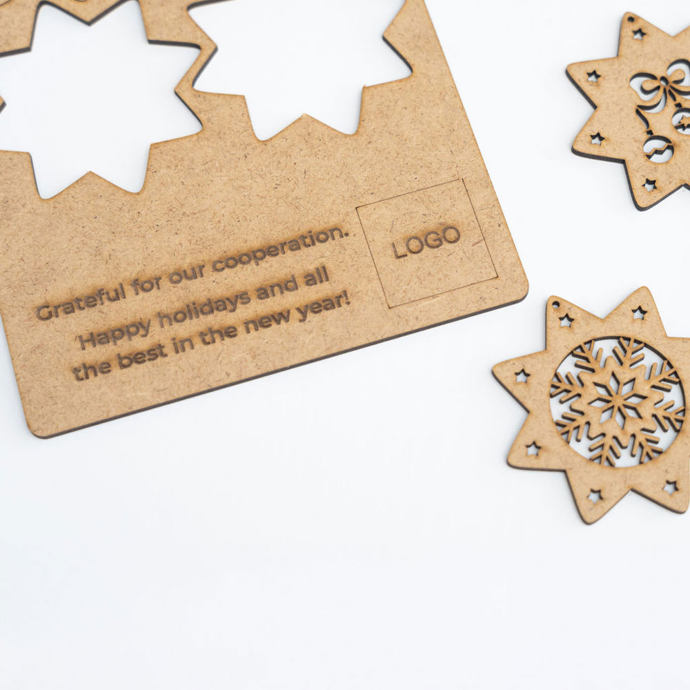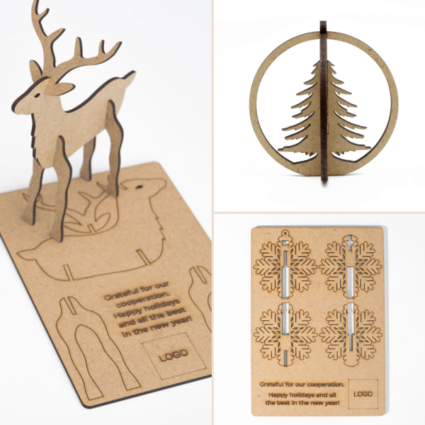 Die Empfänger erhalten nicht nur eine Karte – sie erleben ein Erlebnis. Die laser-geschnittenen Elemente ermöglichen das Zusammensetzen von saisonalen Figuren wie Rentieren, Schneeflocken oder Christbaumschmuck. Auf dem Schreibtisch oder Weihnachtsbaum platziert, bleibt Ihr Geschenk die ganze Saison über – und darüber hinaus – sichtbar.