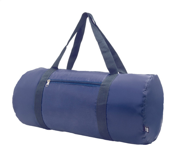 RPET-Sporttasche mit Reißverschluss-Hauptfach, vorderer Reißverschlusstasche und langen Henkeln. Material: 190T RPET-Polyester. Mit RPET-Label.