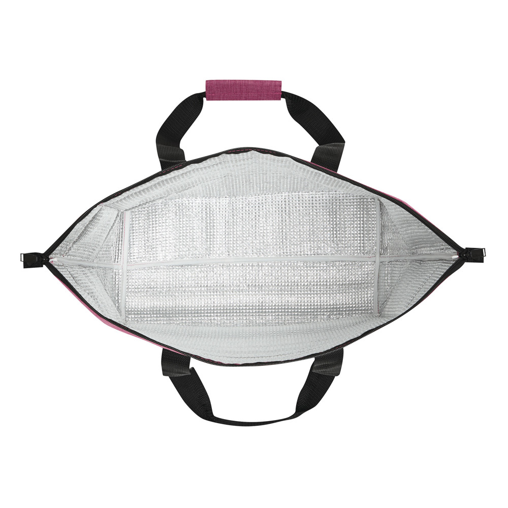Kühltasche POLAR: aus recyceltem Kunststoff (RPET), isoliertes Reißverschluss-Hauptfach mit 2-Wege-Reißverschluss, 1 Einsteckfach auf der Front, verstärkte Tragegriffe, Stauraum anpassbar durch 2 seitliche Gurtbänder mit Druckknopf
