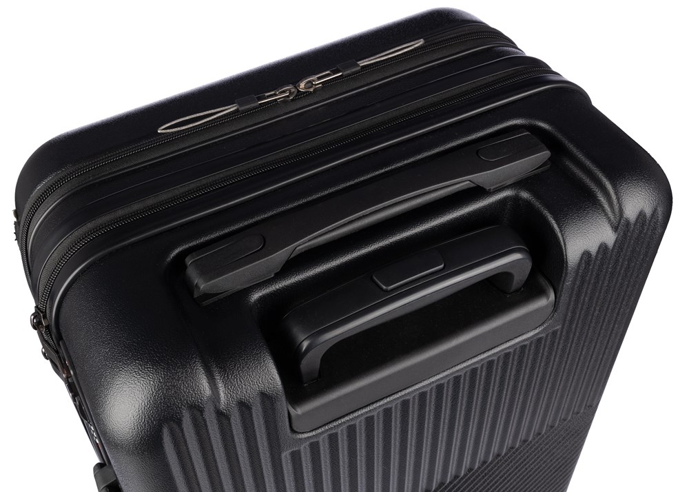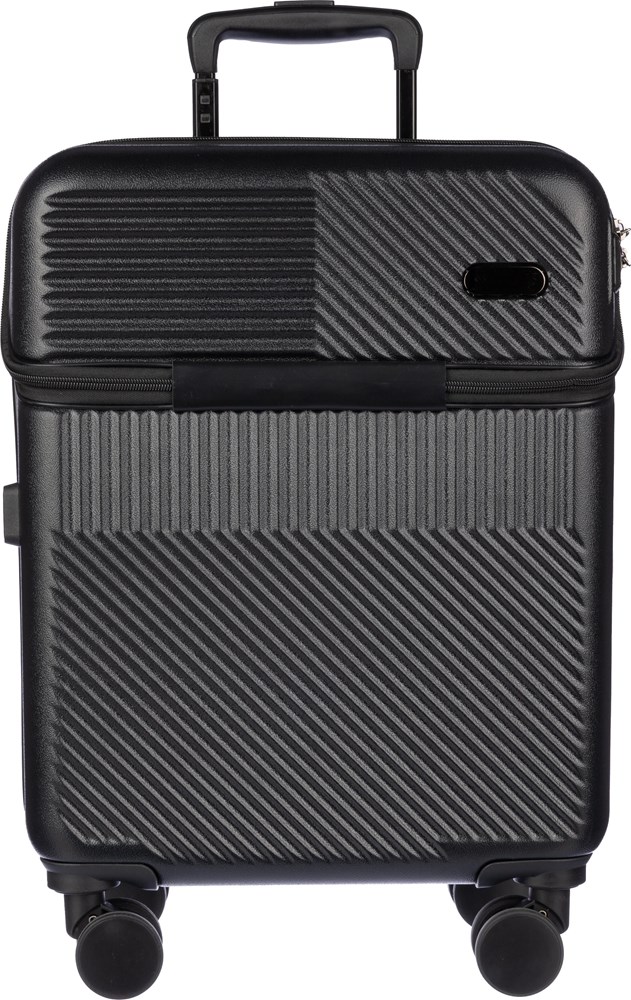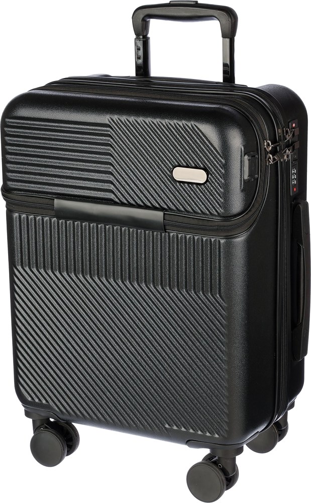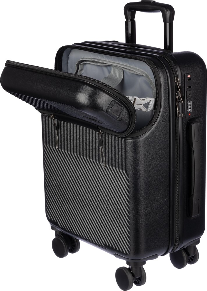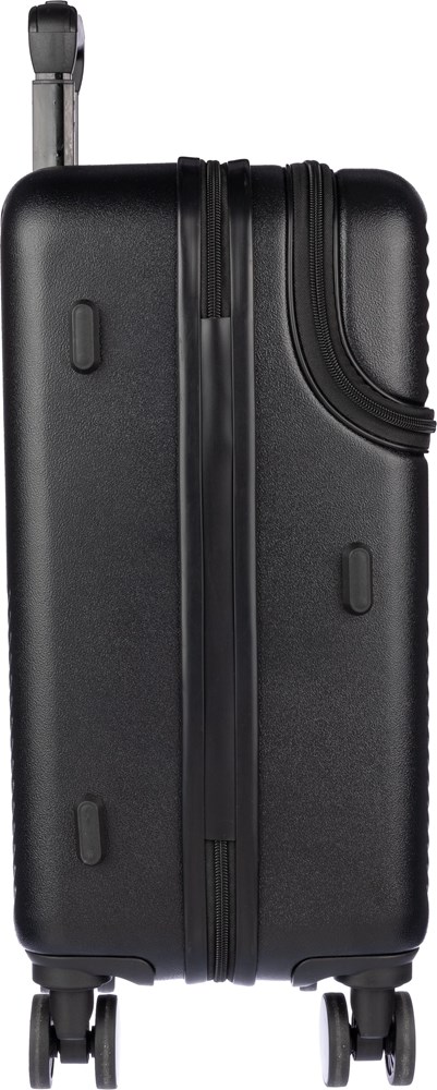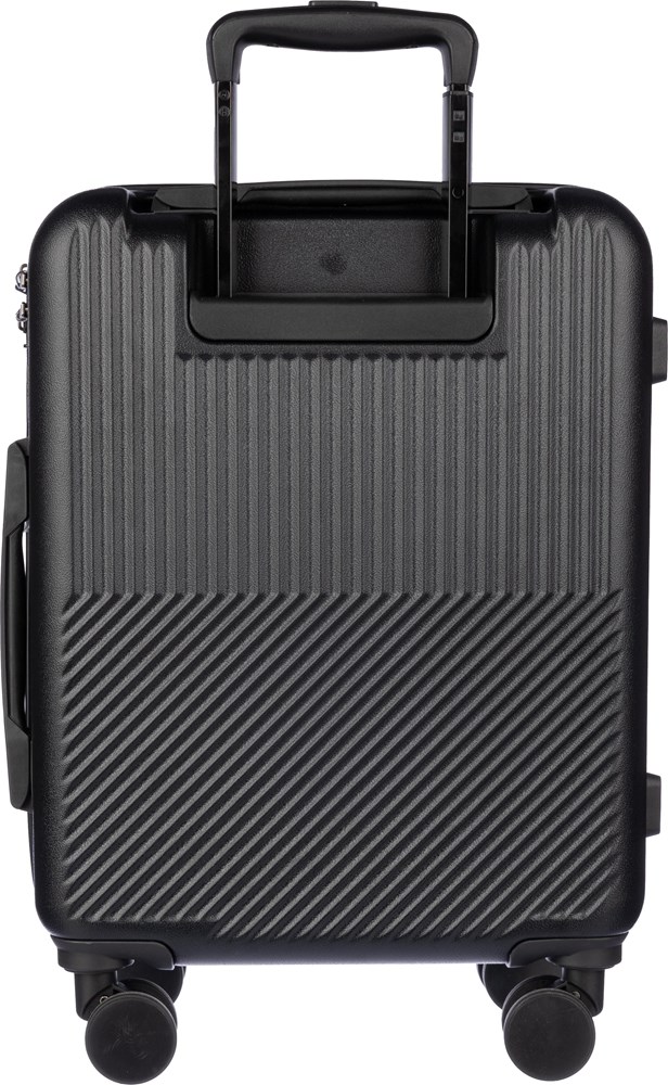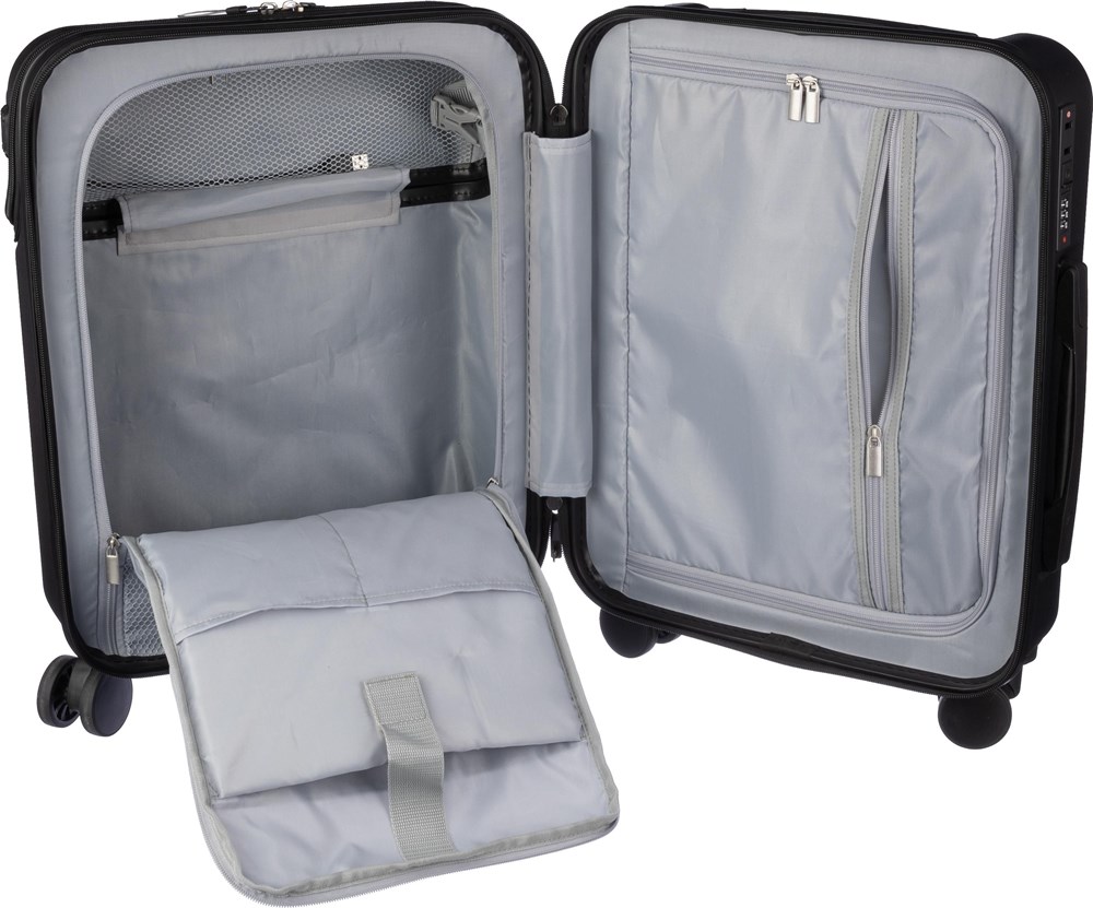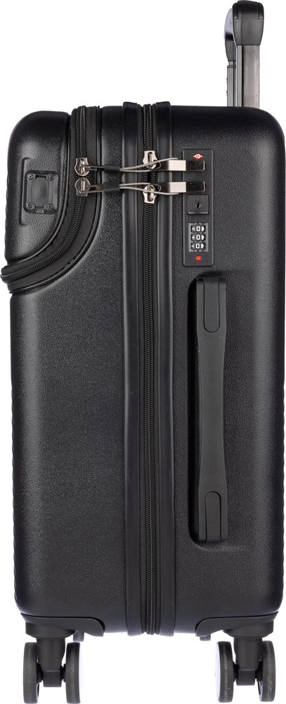 Dieser ABS-Gepäcktrolley (20 Zoll) verfügt über ein Laptopfach mit Reißverschluss an der Vorderseite, acht Rollen und ein dreistufiges Griffsystem. Er wird inklusive Zahlenschloss und separater Platte für eine Lasergravur geliefert. Er verfügt über einen USB-Anschluss.