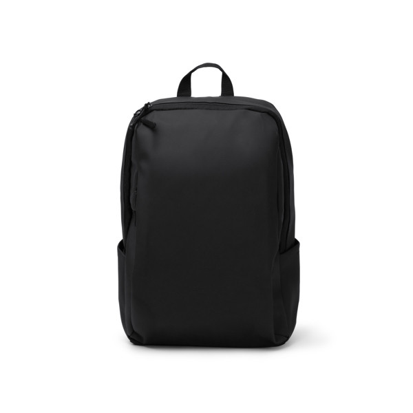 Rucksack aus weichem PU-Leder. Das Hauptfach verfügt über eine spezielle Tasche für den Transport von Geräten wie Tablets. Mit zwei Seitentaschen zum Transportieren anderer Gegenstände wie Flaschen und einem Vorderfach mit verdecktem Reißverschluss. Verstellbare gepolsterte Griffe und schwarze Reißverschlüsse.
