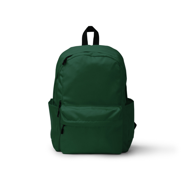Rucksack aus recyceltem Nylon 420D. Das Hauptfach verfügt über eine Tasche für den Transport von Geräten wie einem Laptop bis zu 15 Zoll. Zwei Seitentaschen zum Transportieren von Gegenständen wie Wasserflaschen. Zwei Vorderfächer mit horizontalen und vertikalen Reißverschlüssen. Mit passenden Nähten in der Farbe des Rucksacks und gepolsterten Griffen und Rücken für mehr Komfort.