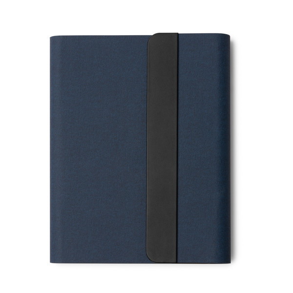 Multifunktionsmappe aus RPET mit Magnetverschluss. Inklusive Smartphone-Aufladung über integrierte 5000-mAh-Powerbank, die per Knopfdruck aktiviert wird. Inklusive Technologie zum kabellosen Aufladen Ihres Mobiltelefons. Mit einem A5-Notizblock für 64 Blatt, einem Kartenhalter und Halterungen für Smartphone und Stift.