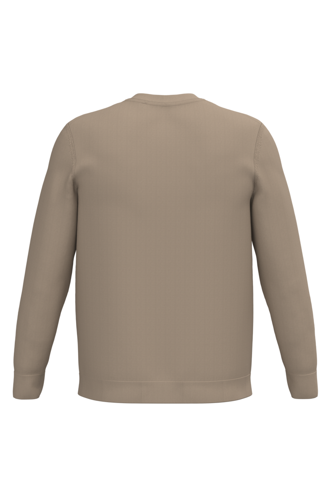 100 % Bio-Baumwolle. Gekämmte Baumwolle. 12 gg Strick. Gerader Schnitt. 1 x 1-Rippstrick am Kragen, am Saum und an den Ärmelenden. Formstrick „Fully Fashion“. Anti-Pilling-Behandlung. Innenseite des Kragens mit einem Nackenband aus tonalem Hauptmaterial. Durchschnittliches Gewicht bei Größe L: 270 g.