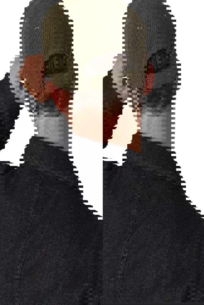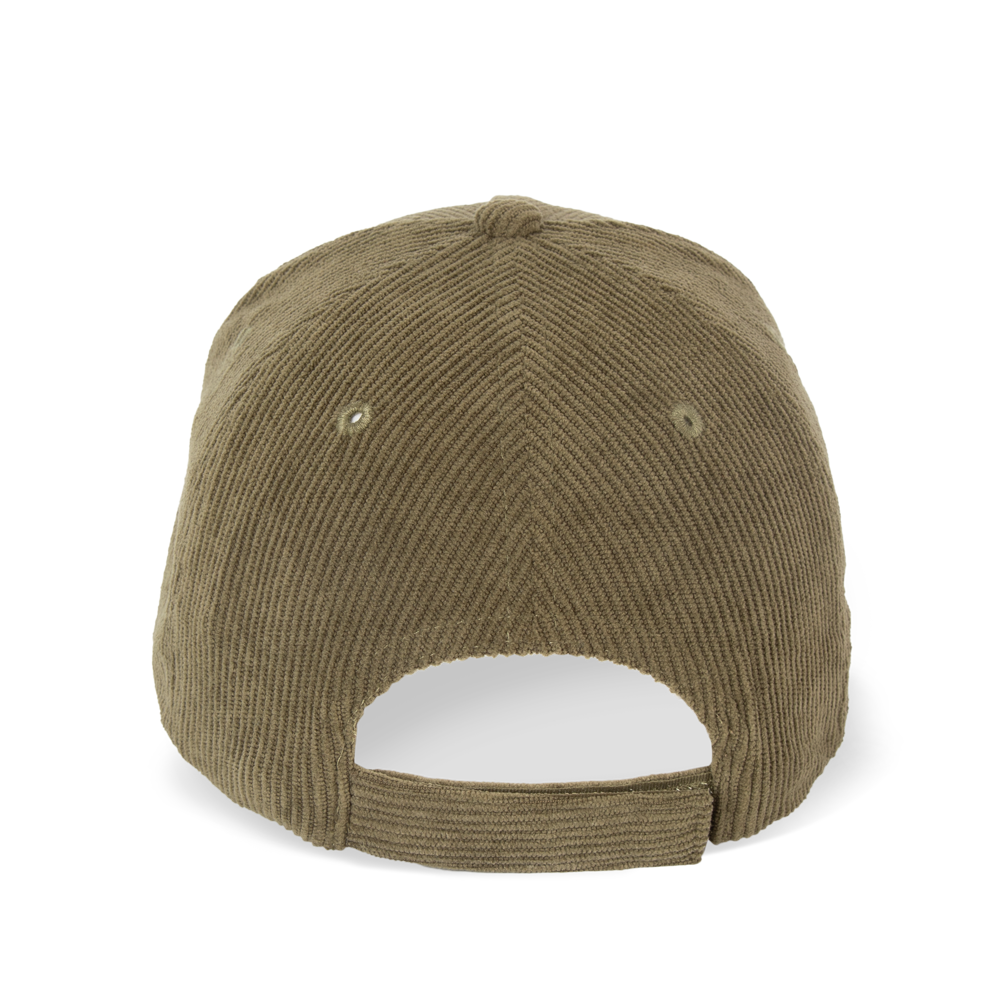 100% Polyester. 5-Panel-Kappe aus Polyestercord. Gebogenes Schild. Verstellbarer Klettverschluss.