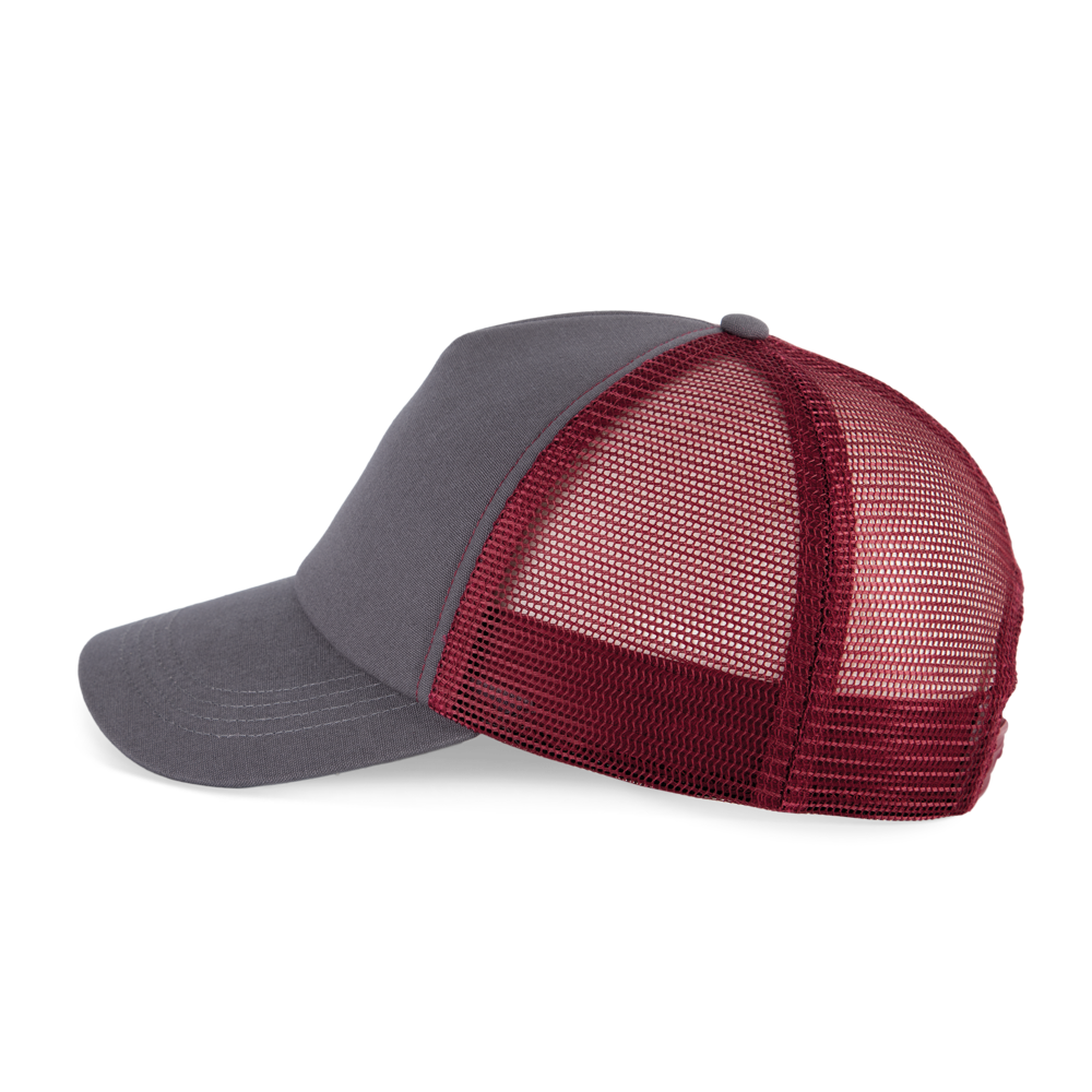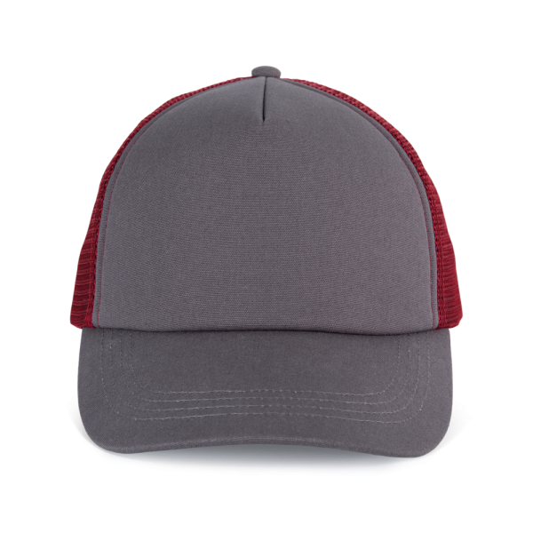 100% Baumwolle. 5-Panel-Kappe. Die K-up Gold Label-Kollektion zeichnet sich durch hochwertige Materialien und Verarbeitungen aus. Frontpanel aus Canvas-Baumwolle mit Schaumstoffstruktur und Innenfutter aus Baumwolle. Gestepptes Schrägband aus Baumwoll-Twill mit 3 Steppnähten. Rückenteil aus 100 % Polyester-Mesh mit Snapback-Verschluss. Tear-away-Etikett, das in die Innenseite des Vorderteils eingenäht ist.