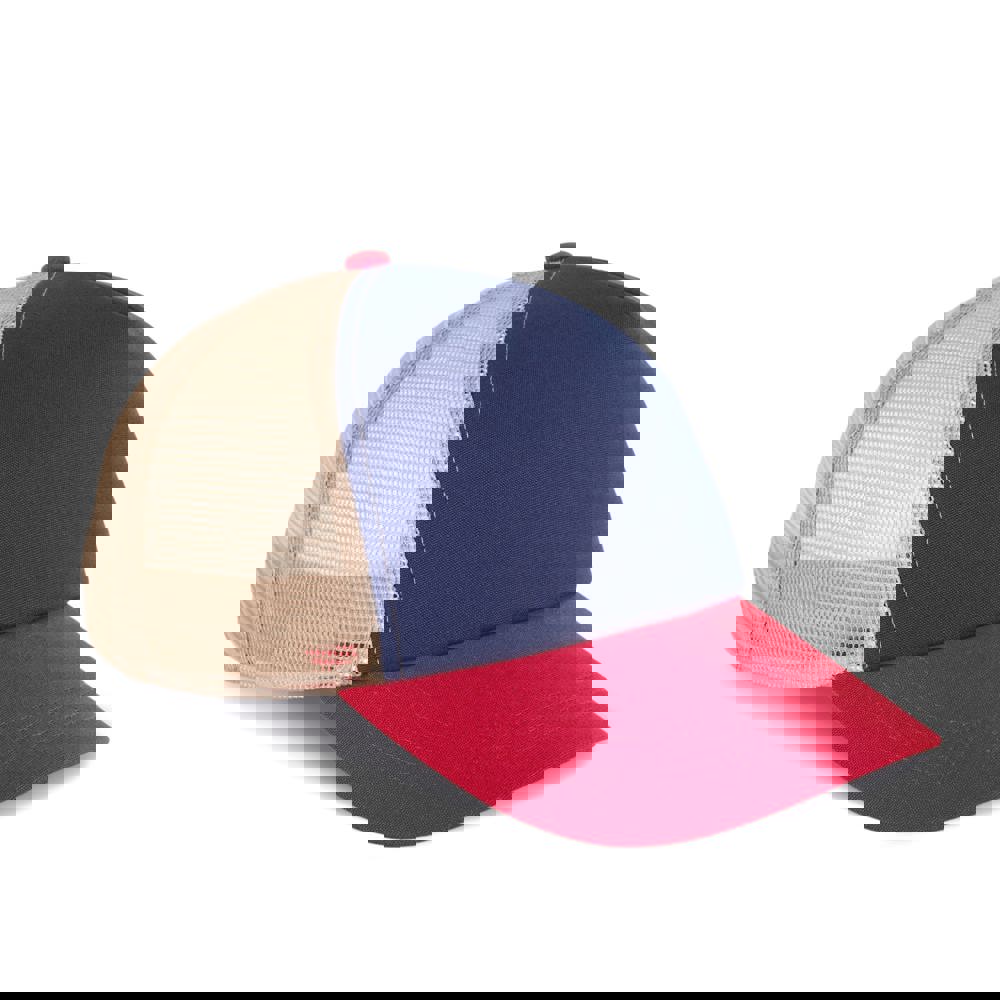 100% Baumwolle. 5-Panel-Kappe. Die K-up Gold Label-Kollektion zeichnet sich durch hochwertige Materialien und Verarbeitungen aus. Frontpanel aus Canvas-Baumwolle mit Schaumstoffstruktur und Innenfutter aus Baumwolle. Gestepptes Schrägband aus Baumwoll-Twill mit 3 Steppnähten. Rückenteil aus 100 % Polyester-Mesh mit Snapback-Verschluss. Tear-away-Etikett, das in die Innenseite des Vorderteils eingenäht ist.