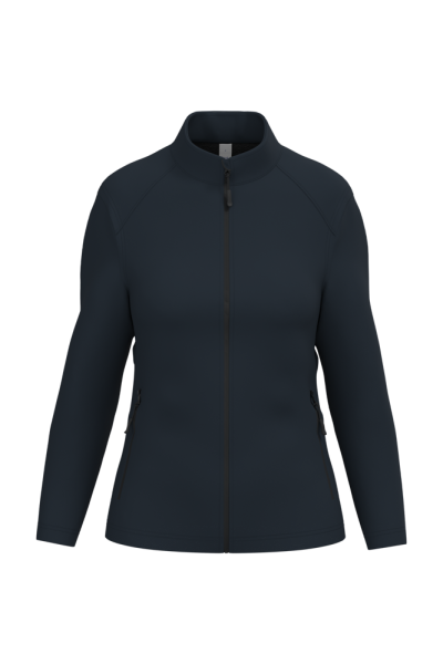 95 % Polyester / 5 % Elasthan. 2-Lagen-Softshell mit wasserabweisender Ausrüstung. Innen: 100 % Polyester in schwarzem Mikrofleece. Gerader Schnitt. Zwei Seitentaschen mit Polytrikot gefüttert, mit Nylon-Reißverschlüssen und schwarzen Reißverschlussanhängern. Schwarzer Nylon-Frontreißverschluss mit Kinnschutz und Zipper. Schulter- und Rückeneinsätze mit Ziernähten. Schwarzes Nackenband. Doppelnähte an Ärmel- und Saumabschlüssen. Abreißbares Markenetikett.