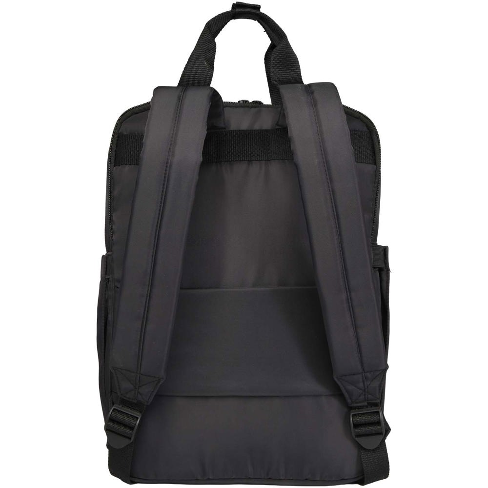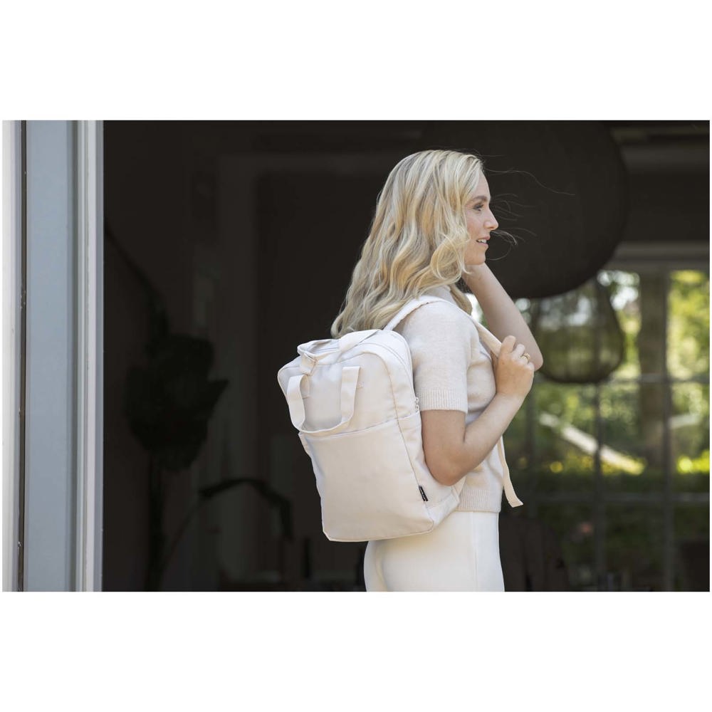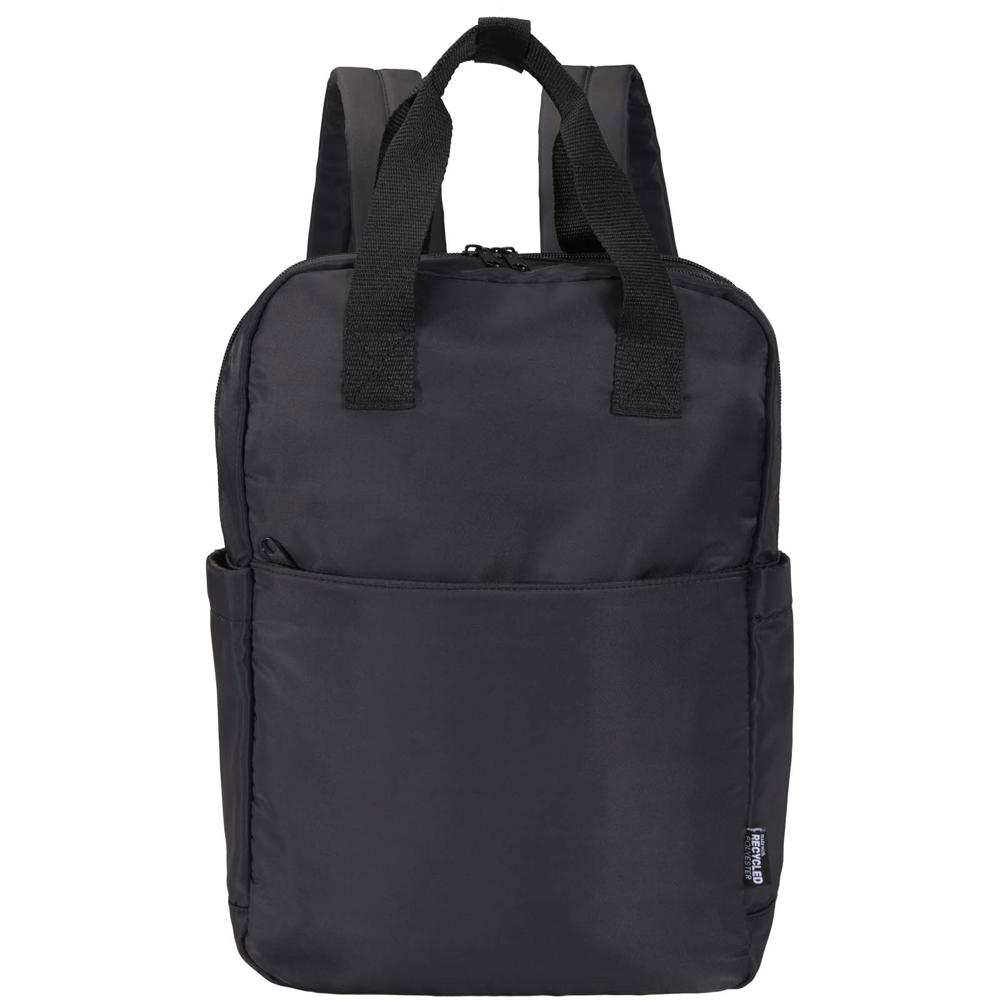 Der recycelte Trip Aware™ Laptop-Rucksack ist ein kompakter, leichter Begleiter für strukturierte Reisen und den Alltag. Hergestellt aus strapazierfähigem 290D-Twill-Polyester mit weicher gestrickter Rückseite und RPET 210D/PU Kunststoff-Futter, vereint er Funktionalität mit einem klaren, praktischen Design. Zwei Seitentaschen für Flaschen, Tragegriffe und gepolsterte Schulterriemen sorgen für Komfort. Die Fronttasche mit Reißverschluss bietet Platz für einen Reisepass, Stifte und ein Schlüsselband. Im Hauptfach ist Platz für ein Notebook oder Tablet. Ein separates 14" Laptopfach und ein Trolleyband machen ihn ideal für unterwegs. Jeder Artikel wird außerdem mit einem Aware™ Tracer geliefert. Diese innovative Funktion ermöglicht es den Nutzern, die Herkunft und den Weg ihres Artikels mithilfe eines QR-Codes nachzuvollziehen, wodurch die Transparenz der Lieferkette erhöht und eine stärkere Verbindung zwischen dem Produkt und seinem Herstellungsprozess fördert. Fassungsvermögen: 9 Liter.