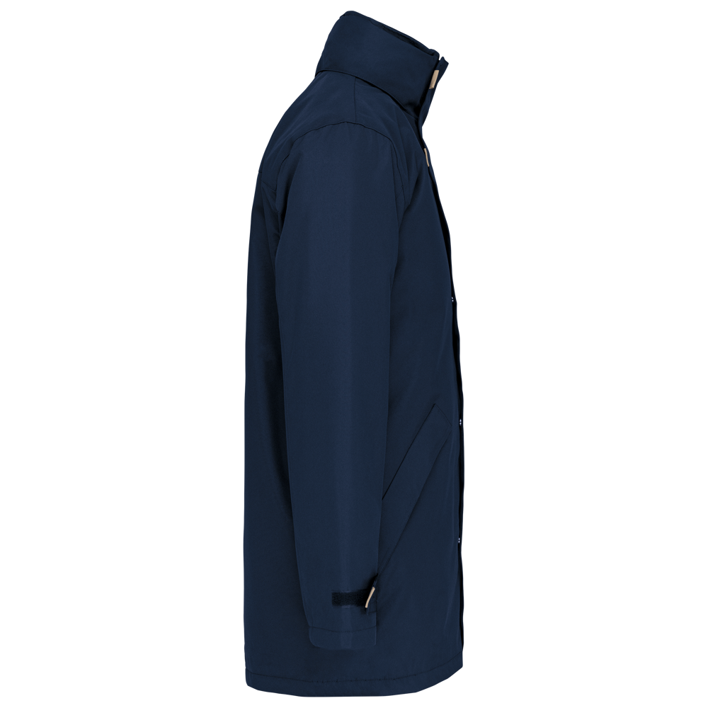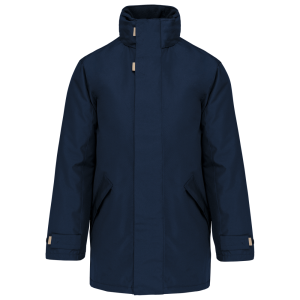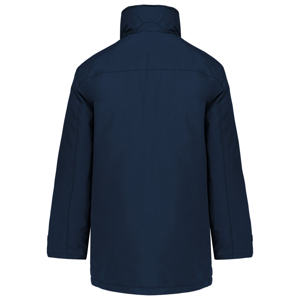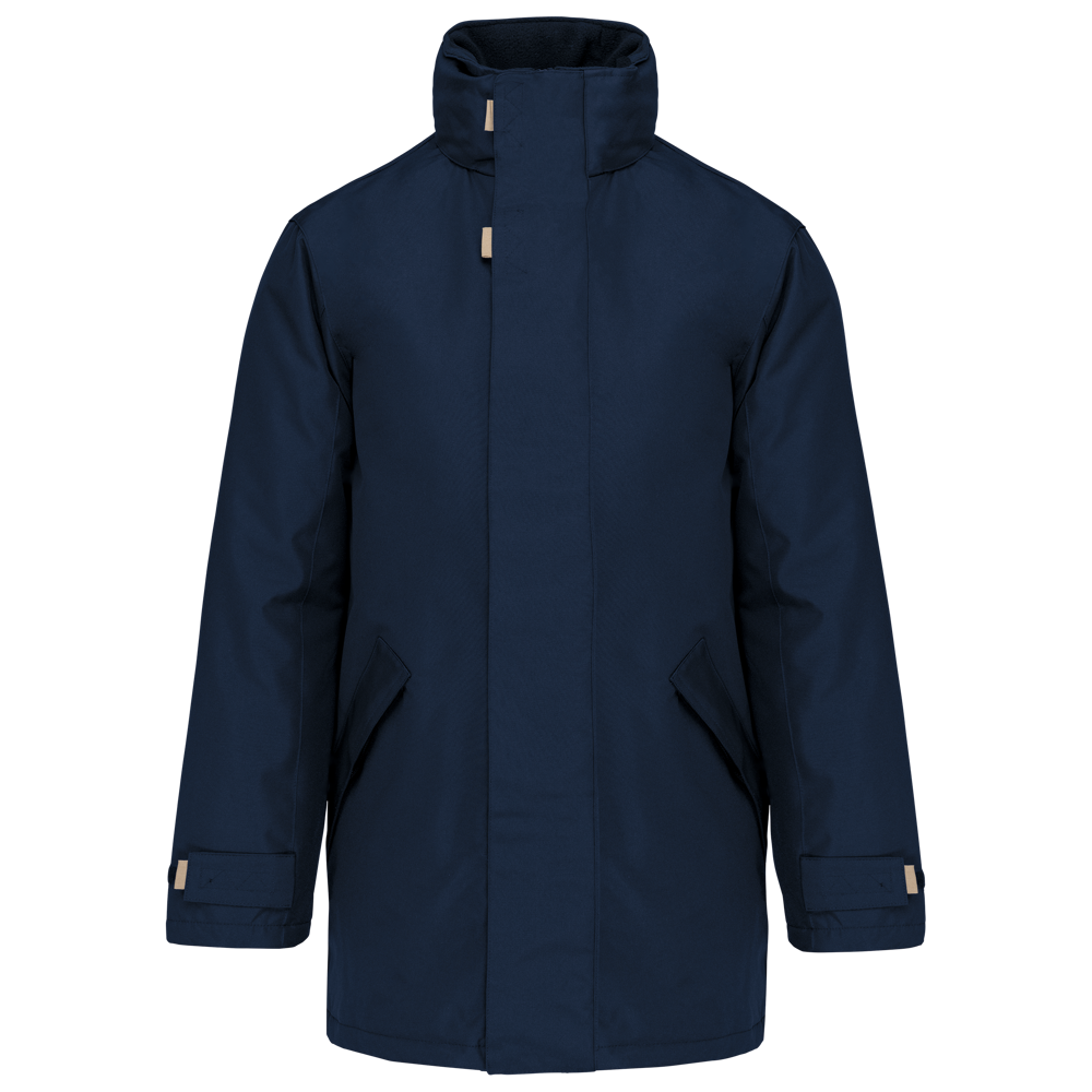 Außenmaterial: 100% Oxford-Polyamid. Futter: 100% Polyamid-Wattierung. Innenkragen aus 100% Polyester-Fleece-Futter. 2 Außentaschen mit Reißverschluss und Klappe. 2 Innentaschen und Handytasche. Steppfutter. Kapuze im Kragen. Reißverschlussabdeckung mit Druckknöpfen. Ärmelverstellung mittels Klettverschlüssen. Veredelungszugang im Rücken.
