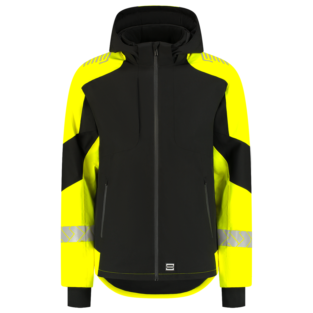 Die Jacke ist mit einer abnehmbaren und verstellbaren Kapuze, einer eingesetzten Brusttasche mit Reißverschluss, einem Fleecekragen, einem verstellbaren Kordelzug in der Taille, wasserdichten Reißverschlüssen und verstellbaren Ärmelbündchen mit weichem Trikotfutter für zusätzlichen Komfort ausgestattet. Die verlängerte Rückenpartie schützt Sie auch, wenn Sie sich bewegen oder in die Hocke gehen. Dank der intelligenten reflektierenden Elemente an Rücken, Schultern und Ärmeln sind Sie bei Tag und Nacht in Arbeitsumgebungen mit mittlerem Risikoprofil gut sichtbar. Darüber hinaus entscheiden Sie sich mit dieser Winterjacke bewusst für Mensch und Umwelt; mit den GRS- und OEKO-TEX® 100-Zertifizierungen liegen Sie immer richtig.