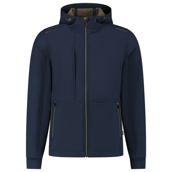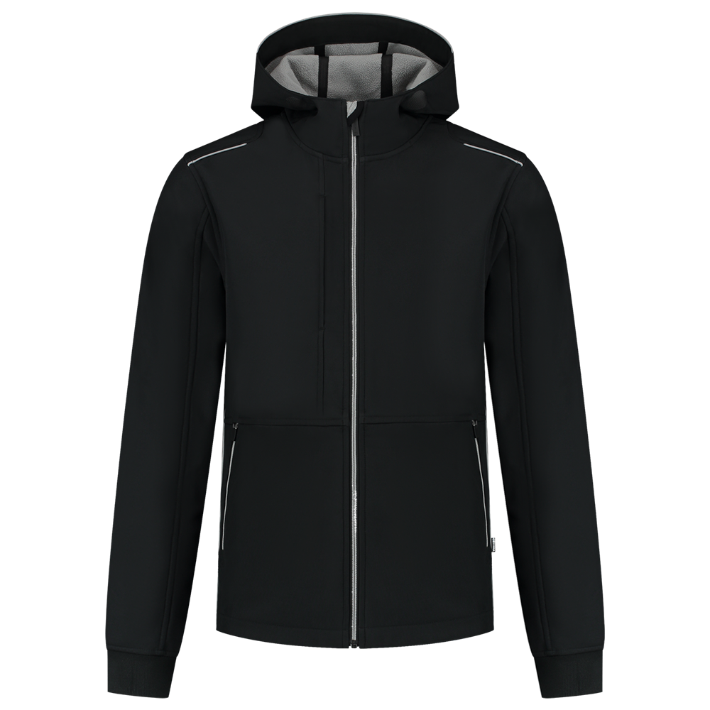 Die Kapuze hat verdeckte Kordelstopper und ist nicht abnehmbar. Dank einer TPU-Membran ist die Softshell winddicht und dank einer fluorcarbonfreien (PFC-freien) DWR-Imprägnierung (Durable Water Repellent) wasserabweisend. Die Jacke hat außerdem mehrere Taschen mit Reißverschluss. Eine mechanische Dehnung sorgt für maximale Bewegungsfreiheit.