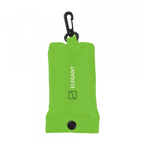 Faltbare Einkaufstasche aus 190T Polyester. Mit Aufbewahrungshülle mit Druckknopf und Karabinerhaken. Die Tasche wird ungefaltet mit separatem Beutel geliefert. Maße gefaltet: 6 x 2,5 x 12,5 cm. Fassungsvermögen ca. 8 Liter