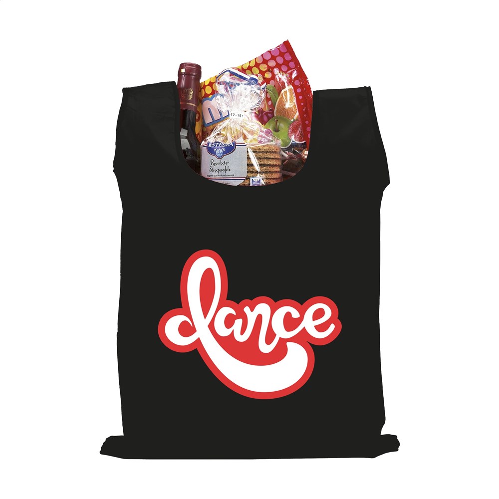 Faltbare Einkaufstasche aus 190T Polyester. Mit Aufbewahrungshülle mit Druckknopf und Karabinerhaken. Die Tasche wird ungefaltet mit separatem Beutel geliefert. Maße gefaltet: 6 x 2,5 x 12,5 cm. Fassungsvermögen ca. 8 Liter