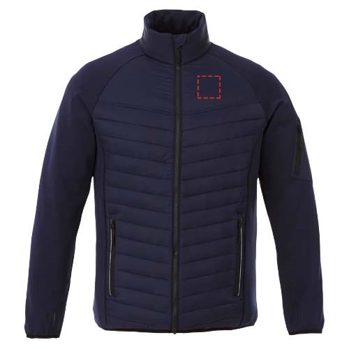 Die Banff Hybrid-Isolierjacke für Herren - eine perfekte Kombination aus Stil und Leistung. Die innere Sturmklappe sorgt dafür, dass der Wind nicht durch die Jacke dringt, und der verlängerte hintere Saum sorgt für zusätzliche Abdeckung und Wärme. Das elastische Bündchen in einer Kontrastfarbe setzt einen stilvollen Akzent und sorgt für einen sicheren Sitz. Das matte 380T-Gewebe der Jacke ist wasserabweisend und daunendicht und besteht aus Nylon (38 g/m2). Der Kontraststoff ist ein Interlock-Gewebe aus Polyester und Elastan (245 g/m2), das für Flexibilität und Komfort sorgt. Die Fake-Daunenisolierung aus Polyester sorgt für leichte Wärme, perfekt für kühle Tage.