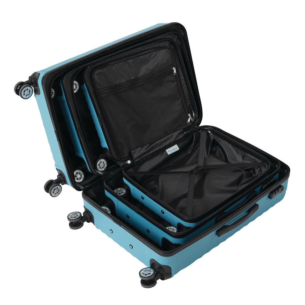 Trolley-Set KINGSTON, 3-teilig: beidseitige Packmöglichkeit, Innenraum mit Raumteiler und Packgurt, Größe XS mit zusätzlichem Netzfach, arretierbares Druckknopf-Trolleysystem, 4-Zwillingsrollen-360°-rundum-Leichtlauf-Fahrwerk, Größe L + XL inkl. Zahlenkombinationsschloss
