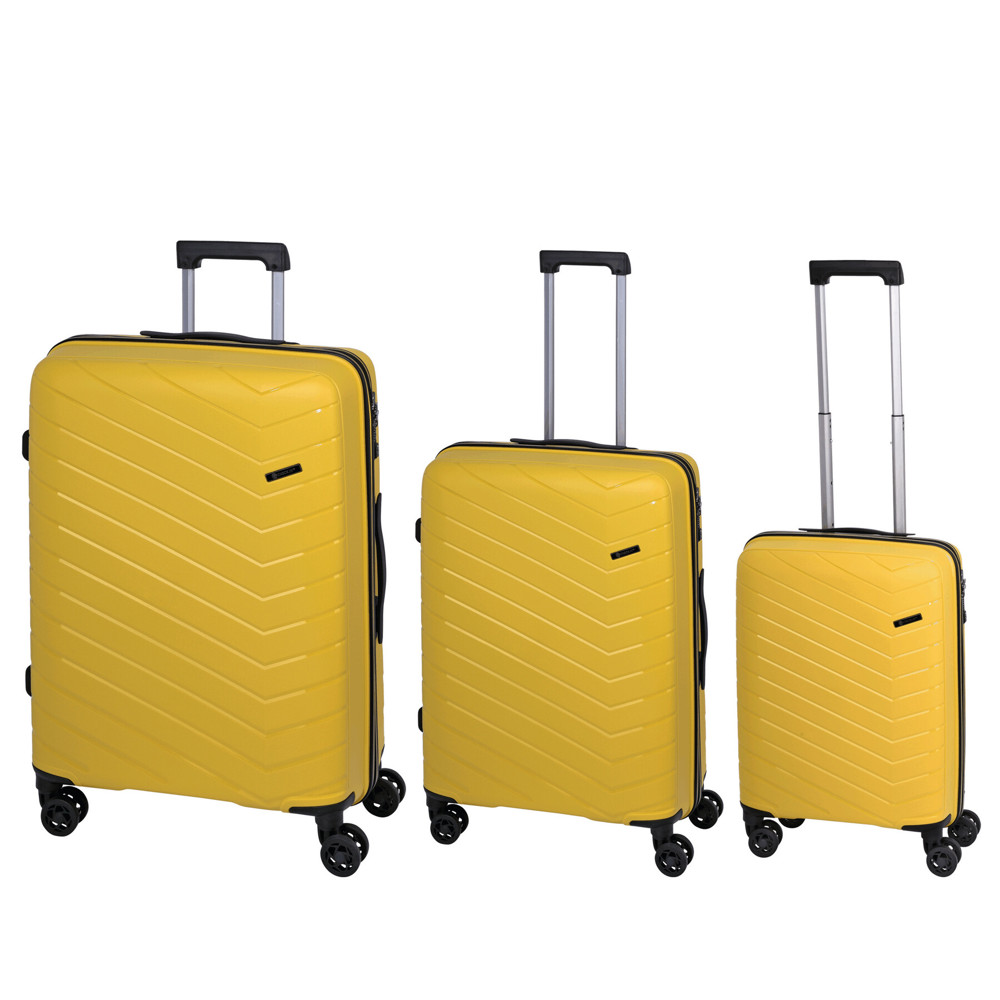 Trolley-Set ORLANDO, 3-teilig: exklusives Design, stabile und widerstandsfähige Polypropylen-Schale, beidseitige Packmöglichkeit, Innenraum mit Raumteiler, Netzfach und Packgurt, arretierbares Aluminium-Druckknopf-Trolleysystem, 4-Zwillingsrollen-360°-rundum-Leichtlauf-Fahrwerk mit Federungssystem, inkl. TSA-Zahlenkombinationsschloss