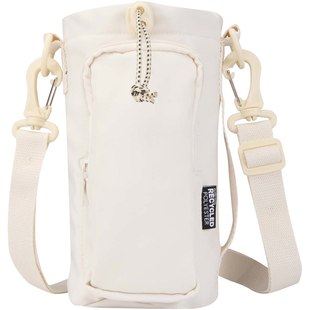 Die recycelte Trip Aware™ Reisetasche für Flaschen ist eine praktische und leichte Lösung, um unterwegs mit ausreichend Flüssigkeit versorgt zu sein. Hergestellt aus 290D-Twill-Polyester mit einer gestrickten Rückseite und RPET 210D/PU Kunstoff-Futter, bietet sie sowohl Langlebigkeit als auch durchdachtes Design. Das Hauptfach verfügt über einen Kordelzugverschluss und bietet Platz für große Flaschen mit Griffen und kleinere Flaschen. Die Rückseite lässt sich öffnen, sodass der Inhalt leicht zugänglich ist. In der Fronttasche können wichtige Utensilien wie ein Telefon verstaut werden. Die Tasche verfügt über ein Innenfach mit Reißverschluss sowie ein Band, an dem sich Schlüssel befestigen lassen. Ein verstellbarer Gurt und ein seitlicher Griff bieten flexible Tragemöglichkeiten. Jeder Artikel wird außerdem mit einem Aware™ Tracer geliefert. Diese innovative Funktion ermöglicht es den Nutzern, die Herkunft und den Weg ihres Artikels mithilfe eines QR-Codes nachzuvollziehen, wodurch die Transparenz der Lieferkette erhöht und eine stärkere Verbindung zwischen dem Produkt und seinem Herstellungsprozess fördert. Fassungsvermögen: 2 Liter.