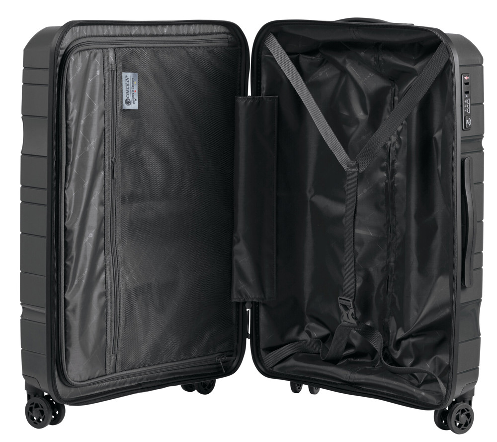 Trolley-Set MEMPHIS, 3-teilig: stabile und widerstandsfähige Polypropylen-Schale, beidseitige Packmöglichkeit, Innenraum mit Raumteiler, Netzfach und Packgurt, arretierbares Aluminium-Druckknopf-Trolleysystem, 4-Zwillingsrollen-360°-rundum-Leichtlauf-Fahrwerk mit Federungssystem, inkl. TSA-Zahlenkombinationsschloss