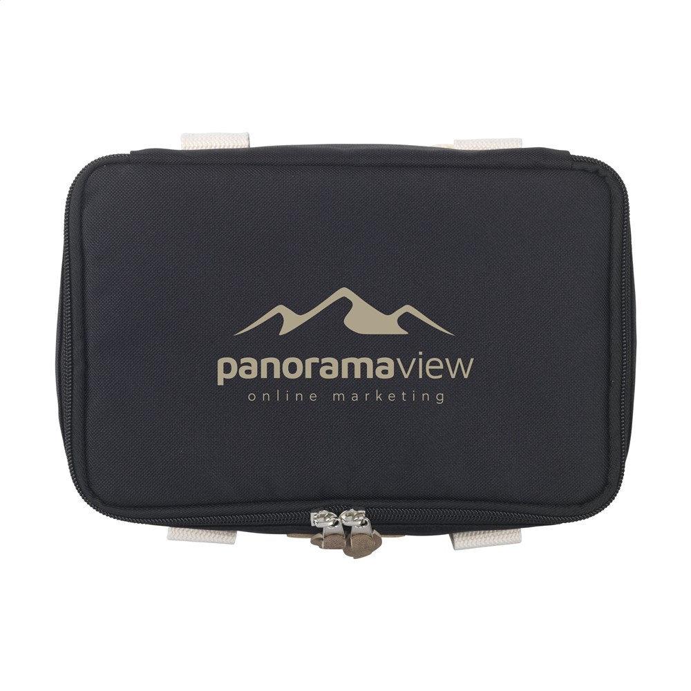 Stilvolle, großzügige Kühltasche der Marke Wooosh. Das Außenmaterial ist aus 100% RPET 600D Polyester gefertigt. Mit einer praktischen Reißverschlusstasche auf der Vorderseite zur Aufbewahrung von Telefon, Ausweis oder Geldbörse. Die attraktiven Akzente, wie die luxuriösen Reißverschlusszüge und die weichen, gewebten Trageriemen, fallen sofort auf. Dank der Isolierschicht bleiben Getränke und Speisen perfekt temperiert. Ideal für ein entspanntes Picknick, einen Tag am Strand oder auf Reisen. GRS-zertifiziert. Fassungsvermögen ca. 9 Liter.