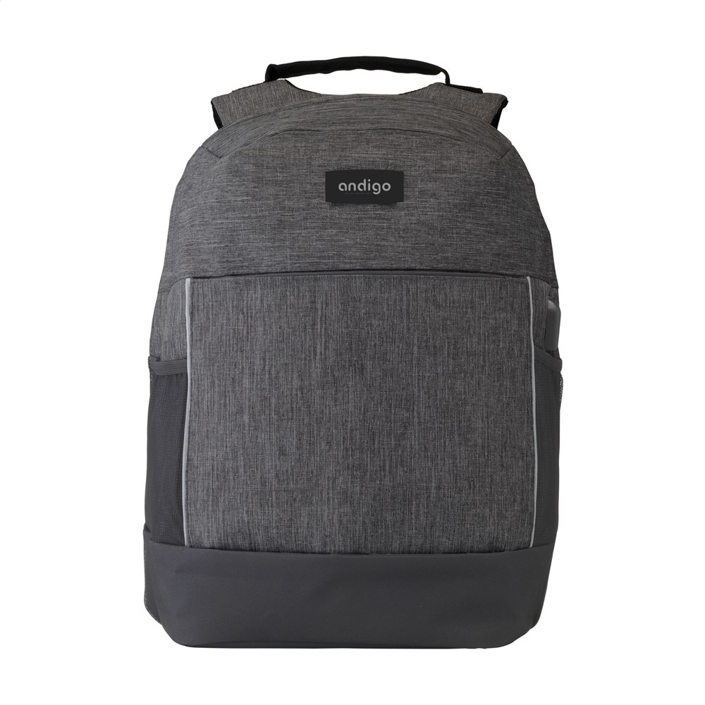 Sehr vollständiger, wetterfester und sicherer Anti-Diebstahl Rucksack aus zweifarbigem 300D-Oxford-Polyester. Mit versteckten Reißverschlüssen auf der Rückseite, die den Taschendiebstahl und unerwünschten Zugriff auf den Inhalt erschweren. Das geräumige Hauptfach, das fast vollständig geöffnet werden kann, ist mit Schaumstofffächern für einen Laptop bis 15,6 Zoll und für ein Tablet bis 12 Zoll, einer Reißverschlusstasche und verschiedenen Fächern ausgestattet. Auf der Vorderseite des Rucksacks befinden sich eine Reißverschlusstasche, reflektierende Akzente für die Sicherheit im Dunkeln und Netztaschen an der Seite zum bequemen Tragen einer Trinkflasche. Sowohl die Rückseite als auch die verstellbaren Schultergurte sind mit stabilem Schaumstoff versehen und mit Gaze in einer Mesh-Struktur versehen. Auf der Oberseite und in beiden Schultergurten verbergen sich RFID-blockierende Reißverschlusstaschen, die Betrug verhindern. Mit verstärktem Boden, Trageschlaufe und einer zusätzlichen Schlaufe zum Befestigen des Rucksacks an einem Trolley. Inklusive USB-Anschluss mit Ladekabel. Die Tasche ist schön verarbeitet, wetterfest, gut gefüttert und der Tragekomfort ist garantiert. Fassungsvermögen ca. 20 Liter.