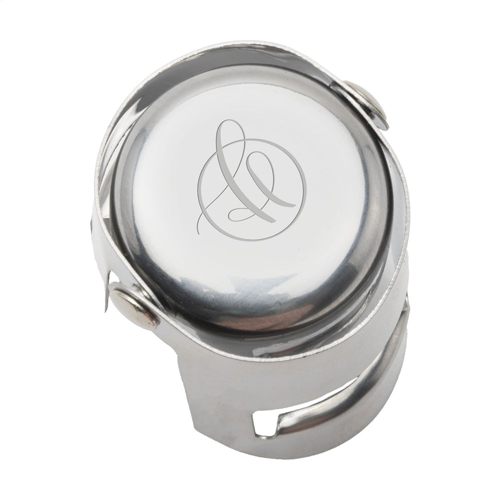 Stilvoller Flaschenstopfen aus Edelstahl für das luftdichte Verschließen von Champagnerflaschen und Weinflaschen mit Korken. Verpackt pro Stück.