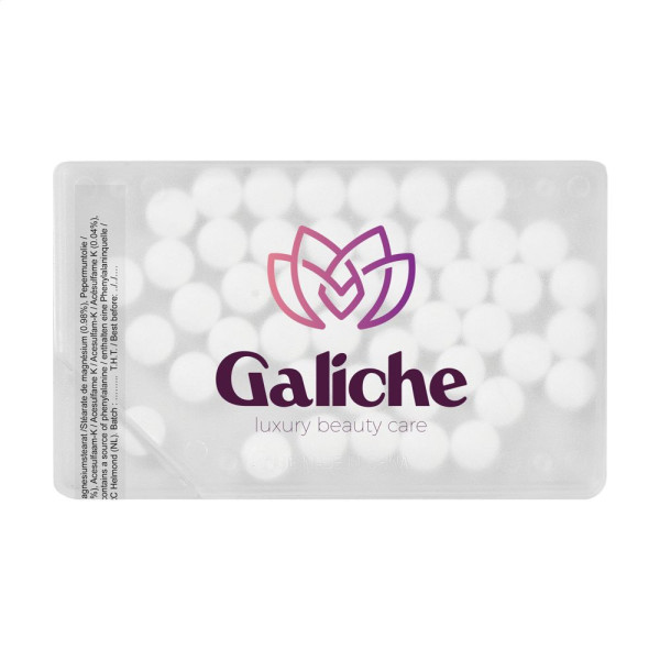Spender mit ca. 8 g (50 Stück) zuckerfreien Pfefferminzpastillen.