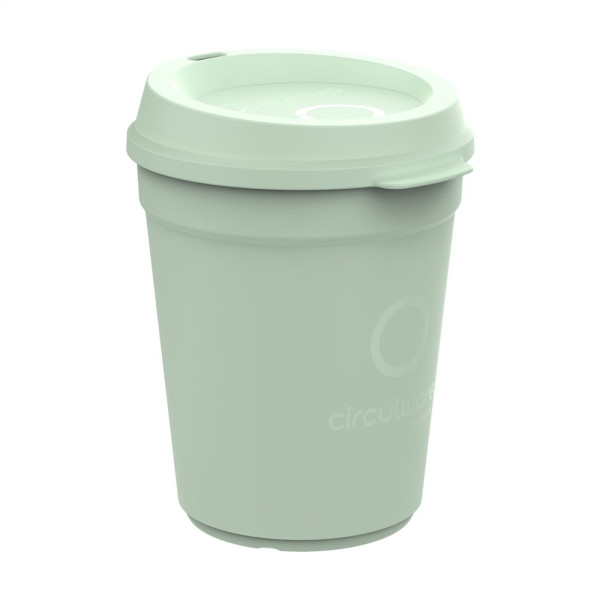 iederverwendbarer, stapelbarer Becher mit Deckel der Marke Circulware. Dieser Becher ist aus hochwertigem Kunststoff hergestellt und kann bis zu 500 Mal verwendet werden. Der stapelbare Deckel besteht zu 100% aus recycelbarem Kunststoff und schließt perfekt. Dies macht ihn zu einem idealen Becher für unterwegs. Geeignet für einen heißen Kaffee oder ein erfrischendes Getränk. Eine großartige Alternative zum Einwegbecher. Der Becher ist leicht, einfach zu reinigen und stapelbar, also platzsparend. Für Lebensmittel zugelassen. Spülmaschinengeeignet und mikrowellengeeignet. 100% recycelbar. Damit leistet dieser Becher einen Beitrag zur Kreislaufwirtschaft. Niederländisches Design. Made in Holland. Fassungsvermögen: 300 ml.