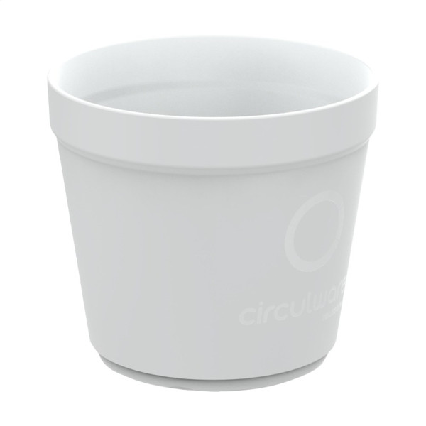 iederverwendbarer, stapelbarer Becher der Marke Circulware. Dieser Becher ist aus hochwertigem Kunststoff hergestellt und kann bis zu 500 Mal verwendet werden. Geeignet für einen heißen Kaffee, ein Erfrischungsgetränk oder ein Eis. Eine großartige Alternative zum Einwegbecher. Der Becher ist leicht, einfach zu reinigen und stapelbar, also platzsparend. Für Lebensmittel zugelassen. Spülmaschinengeeignet und mikrowellengeeignet. 100% recycelbar. Damit leistet dieser Becher einen Beitrag zur Kreislaufwirtschaft. Niederländisches Design. Made in Holland. Fassungsvermögen: 200 ml.
