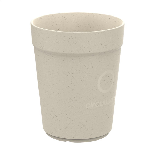 iederverwendbarer, stapelbarer Becher der Marke Circulware. Dieser Becher ist aus hochwertigem Kunststoff hergestellt und kann bis zu 500 Mal verwendet werden. Geeignet für einen heißen Kaffee, ein Erfrischungsgetränk oder ein Eis. Eine großartige Alternative zum Einwegbecher. Der Becher ist leicht, einfach zu reinigen und stapelbar, also platzsparend. Für Lebensmittel zugelassen. Spülmaschinengeeignet und mikrowellengeeignet. 100% recycelbar. Damit leistet dieser Becher einen Beitrag zur Kreislaufwirtschaft. Niederländisches Design. Made in Holland. Fassungsvermögen: 300 ml.