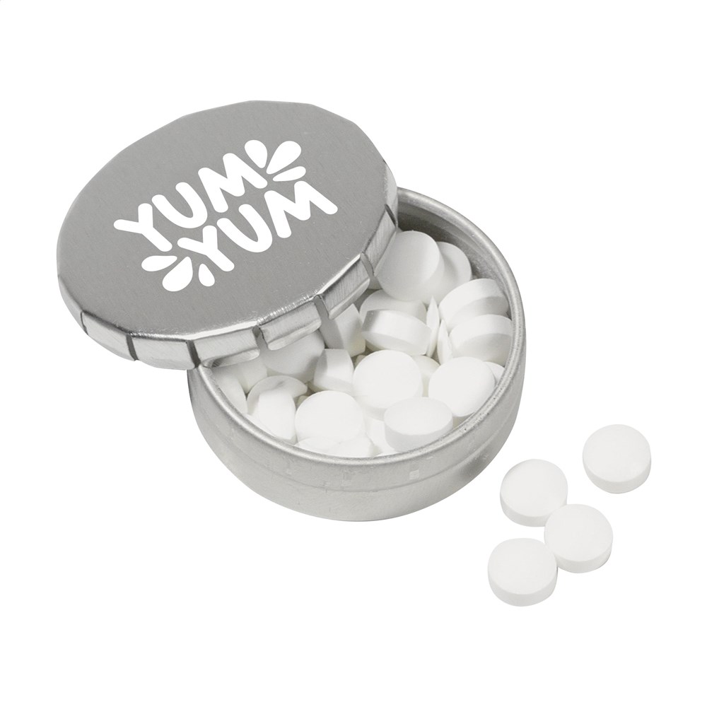 Süßigkeitendöschen mit handlichem Druck-/Klicksystem. Gefüllt mit ca. 12 g. Pastillen. mehr