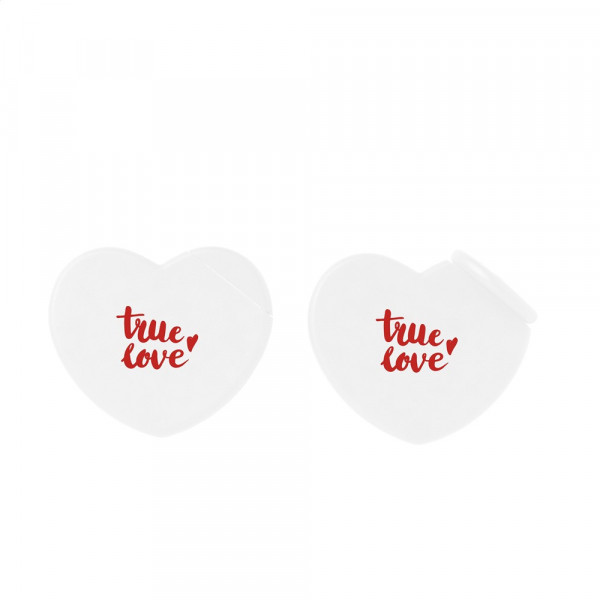 Ein kompakter und flacher herzförmiger Spender aus Kunststoff, gefüllt mit ca. 8 Gramm (50 Stück) zuckerfreien Pfefferminzdrops.