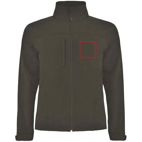 3-lagige Softshell-Jacke: Durchgehender Reißverschluss mit Kinnschutz und Zipper. Außentasche auf der Brust mit Reißverschluss und Zipper. Außentaschen mit Reißverschluss und Zipper. Klettverschlüsse an den Ärmelbündchen. Ausschnitt oder Paspel auf der Vorderseite der Brust. Ausschnitt oder vorgeformter Einsatz am Rücken. Saum mit elastischer Kordel und verstellbaren Stoppern innen. 1000 mm Wassersäule. Winddicht. Das Modell ist 184 cm groß und trägt Größe L.
