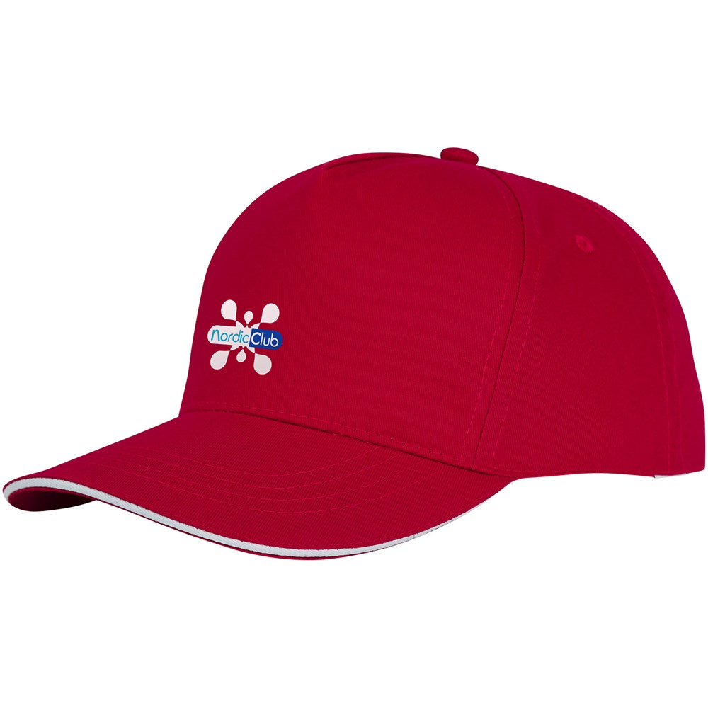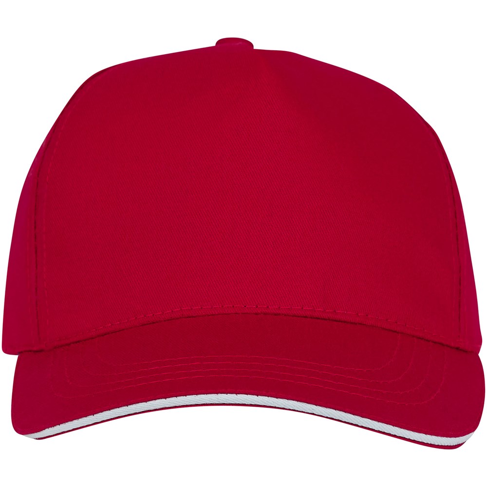 Die Ceto 5 Segmente Sandwich Mütze - Stil und Zweckmäßigkeit harmonisch vereint. Sie ist aus 175 g/m² Baumwolltwill gefertigt und bietet nicht nur Haltbarkeit, sondern auch ein weiches und atmungsaktives Tragegefühl. Mit einem vorgeformten Schirm und einem Sandwich-Design bietet die Kappe Sonnenschutz mit einem Hauch von Eleganz. Mit einem strukturierten Vorderteil und Details aus Baumwolle im Inneren bietet diese Kappe sowohl Raffinesse als auch Komfort. Mit einem Kopfumfang von 58 cm garantiert sie eine maßgeschneiderte Passform für eine Vielzahl von Kopfgrößen. Der Klettverschluss aus Stoff lässt sich mühelos verstellen und ermöglicht so eine perfekte Passform. Die Ceto Mütze ist das ideale Accessoire für jede Gelegenheit, egal ob es sich um einen lässigen Ausflug oder ein Outdoor-Abenteuer handelt.