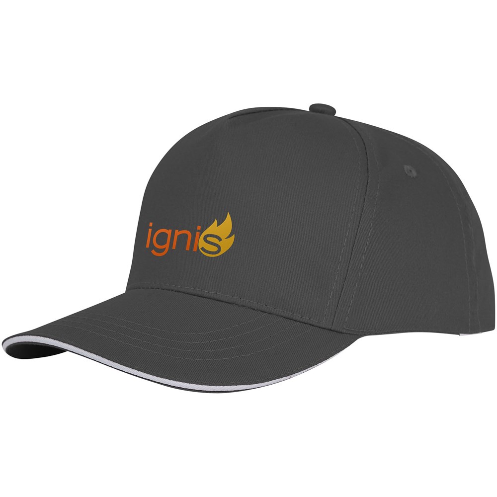 Die Ceto 5 Segmente Sandwich Mütze - Stil und Zweckmäßigkeit harmonisch vereint. Sie ist aus 175 g/m² Baumwolltwill gefertigt und bietet nicht nur Haltbarkeit, sondern auch ein weiches und atmungsaktives Tragegefühl. Mit einem vorgeformten Schirm und einem Sandwich-Design bietet die Kappe Sonnenschutz mit einem Hauch von Eleganz. Mit einem strukturierten Vorderteil und Details aus Baumwolle im Inneren bietet diese Kappe sowohl Raffinesse als auch Komfort. Mit einem Kopfumfang von 58 cm garantiert sie eine maßgeschneiderte Passform für eine Vielzahl von Kopfgrößen. Der Klettverschluss aus Stoff lässt sich mühelos verstellen und ermöglicht so eine perfekte Passform. Die Ceto Mütze ist das ideale Accessoire für jede Gelegenheit, egal ob es sich um einen lässigen Ausflug oder ein Outdoor-Abenteuer handelt.