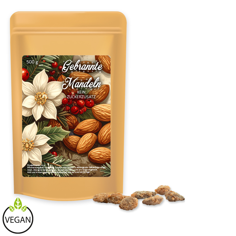 Feuergebrannte Mandeln ohne Zuckerzusatz, ca. 500g, Standbeutel Maxi
