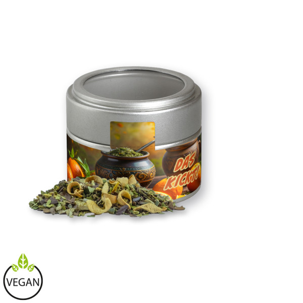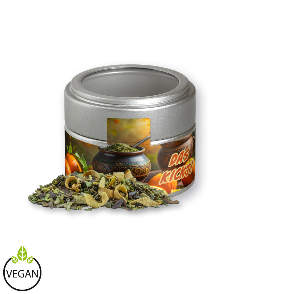 Matetee Orange, ca. 19g, Metalldose Mini mit Sichtfenster silber