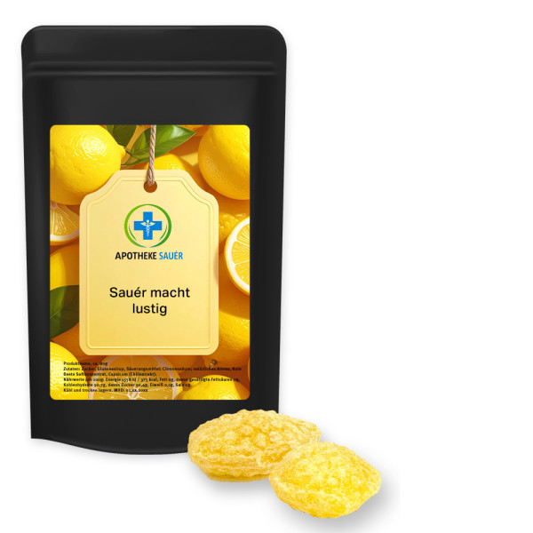 Zitronenbonbons mit Vitamin D, ca. 80g, Standbeutel Midi schwarz