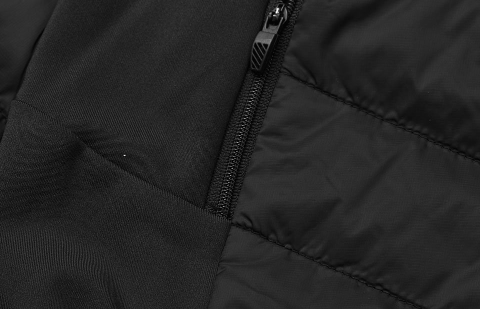 Sportliche Hybridjacke mit THERMOLITE® T-DOWN-Isolierung aus recycelten PET-Materialien. Die Jacke besteht auf weichem 4-Wege Stretchmaterial für optimalen Komfort und Bewegungsfreiheit. Vorderseite, Rücken und Ärmel in leicht gesteppter und winddichter Qualität. YKK Reißverschluss an Vorderseite und Seitentaschen. Gummizug am Saum. Reflektorprint an Vorderseite.