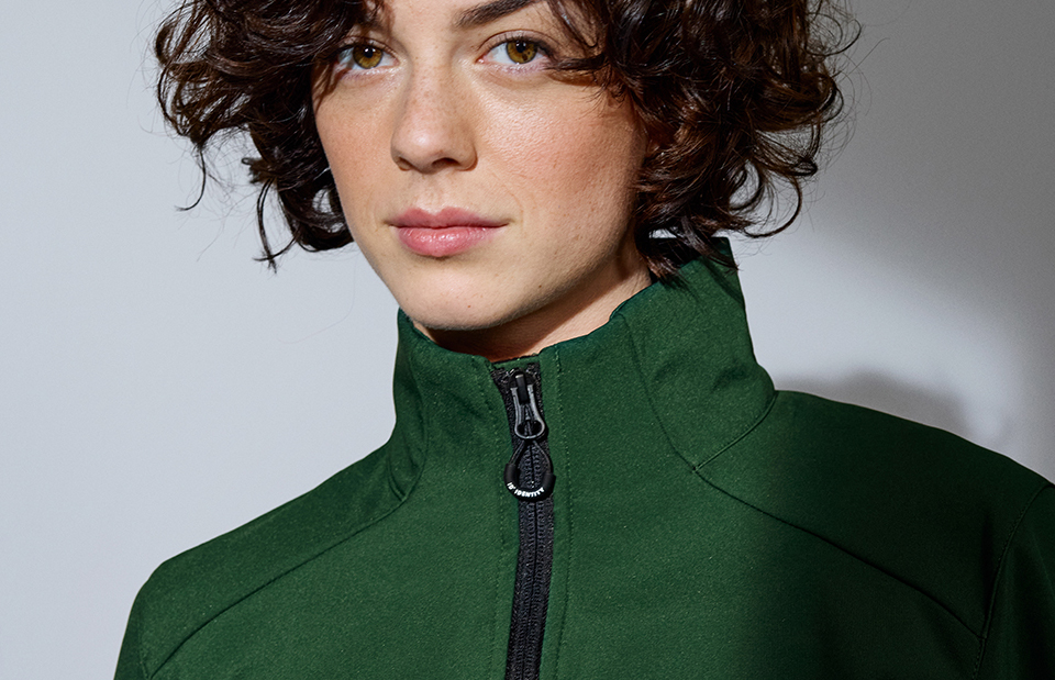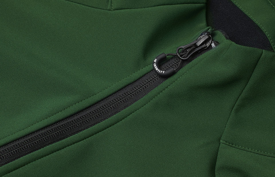3-schichtige ID-Tech® Soft Shell-Qualität Strapazierfähige, dehnbare gewebte Qualität Zwei große Seitentaschen