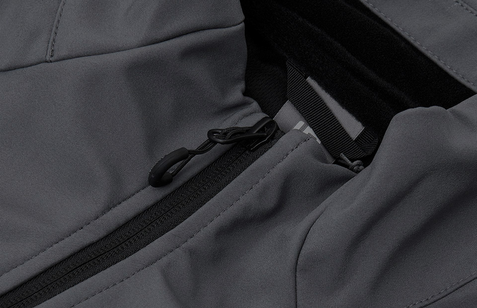 3-schichtige ID-Tech® Soft Shell-Qualität Strapazierfähige, dehnbare gewebte Qualität Zwei große Seitentaschen