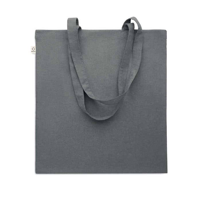 Einkaufstasche aus recycelter Post-Consumer-Baumwolle (70 % recycelte Baumwolle und 30 % RPET) mit langen Tragegriffen. 140 g/m². Artikel kann nach dem Bedrucken schrumpfen.