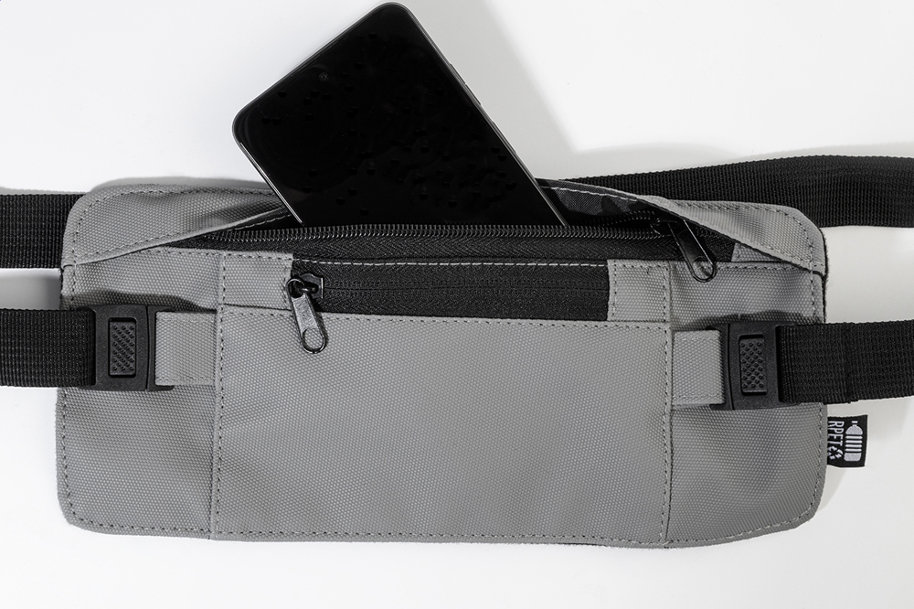Schmale RPET-Gürteltasche mit PU-beschichteter Vorderseite, Reißverschlussfach, Vordertasche und... mehr