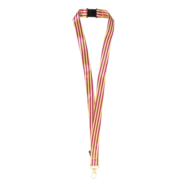 Individuelles Lanyard aus RPET mit farbigem Metallkarabiner und Panikverschluss. Der Preis ist inkl. beidseitigem Sublimationsdruck. Mindestmenge: 100 Stk.