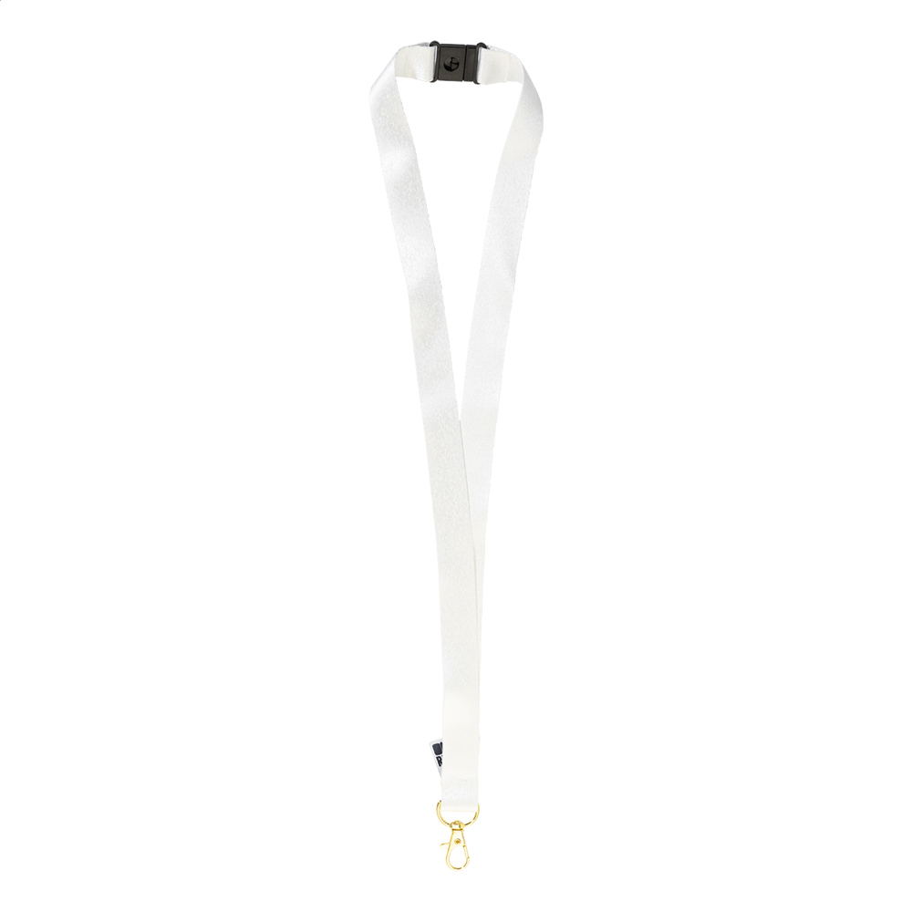 Individuelles Lanyard aus RPET mit farbigem Metallkarabiner und Panikverschluss. Der Preis ist... mehr