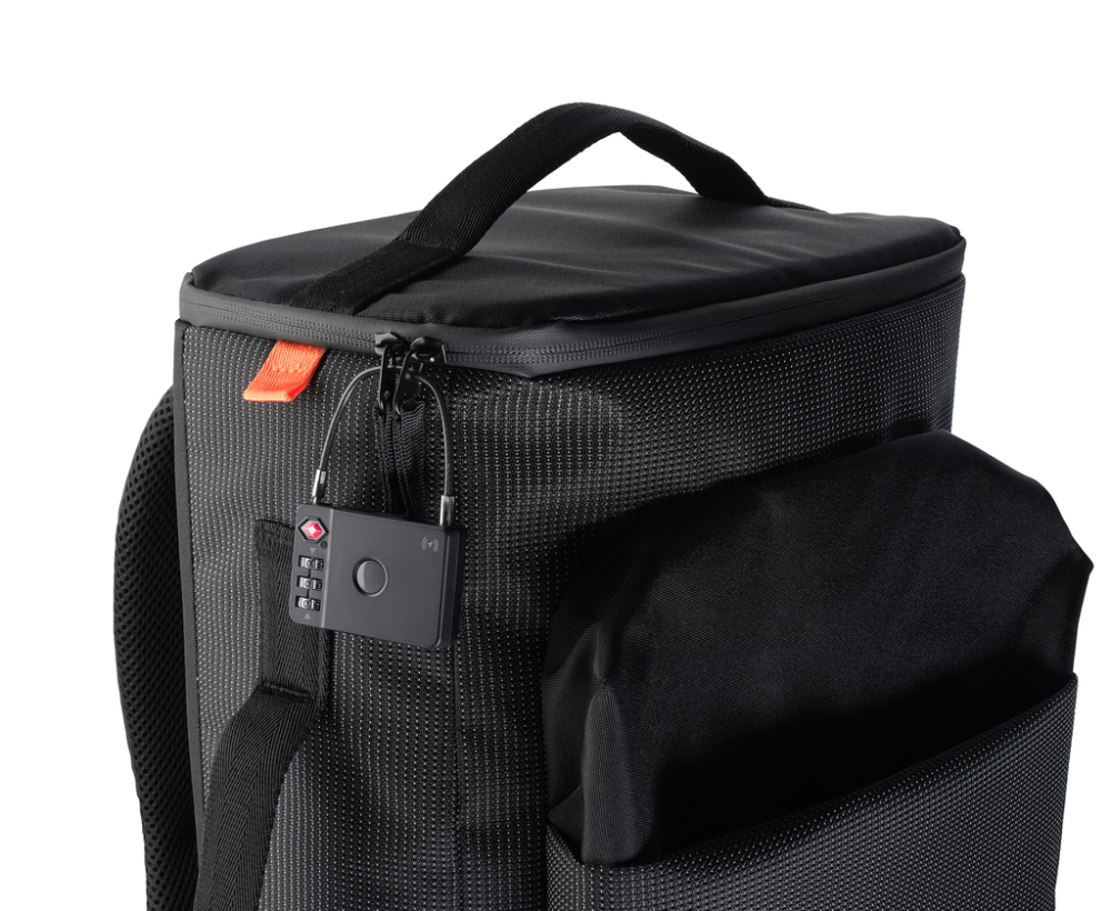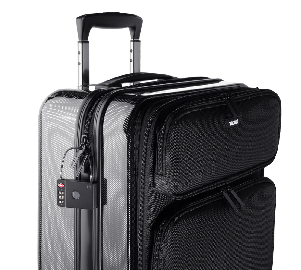 TSA-Kofferschloss mit Apple® Find My Funktion, ermöglicht das Orten des Gepäckstücks und der darin befindlichen Gegenstände, verhindert unerlaubtes Öffnen des Koffers, Zahlencode individuell einstellbar, funktioniert mit allen kompatiblen Apple® Geräten, ABS, Metall, schwarz