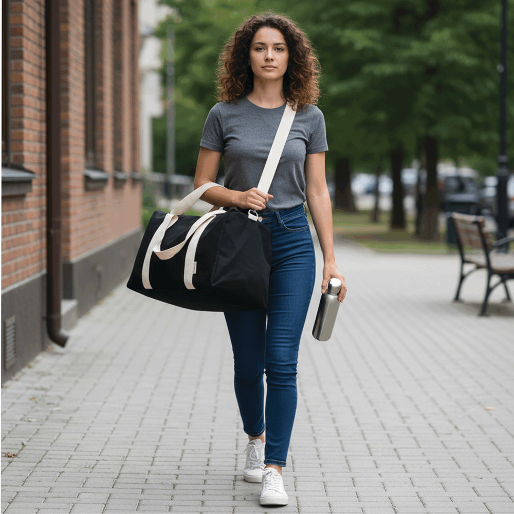 Sporttasche BANKURA: aus recycelter Baumwolle und Polyester, geräumiges Reißverschluss-Hauptfach, 2 Tragegriffe, verstell- und abnehmbarer Schultergurt